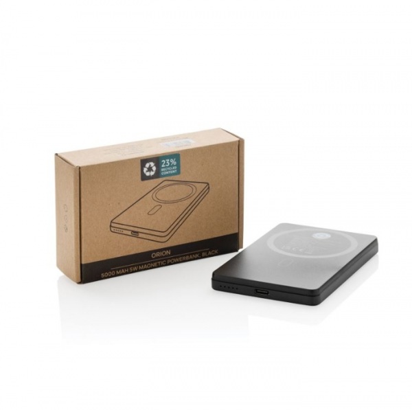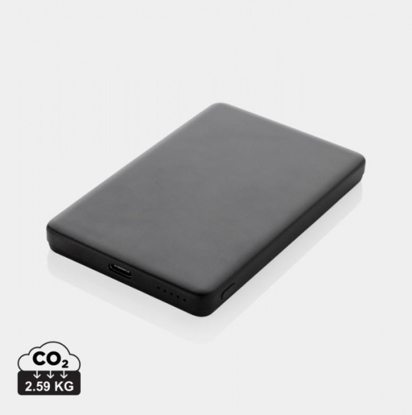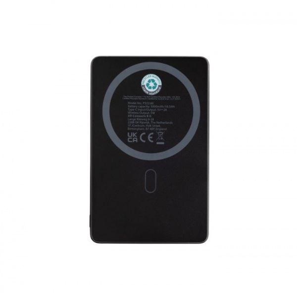 Ultratenká powerbanka s kapacitou 5 000 mAh a 5W magnetickou bezdrôtovou nabíjačkou. Powerbanka obsahuje lítium-polymérovú batériu triedy A s dlhou výdržou 5 000 mAh. Vstup typu C 5V/2,4A; výstup USB C: 5V/2A.4A. PVC free. Vrátane nabíjacieho kábla.