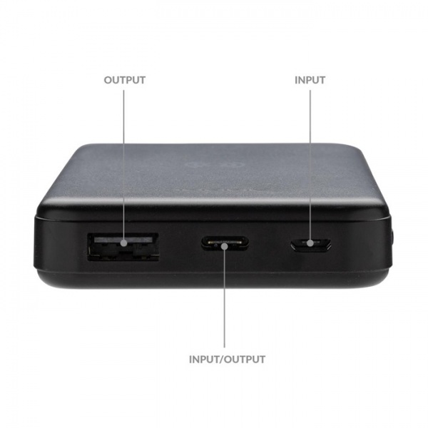 Bezdrôtová 5W powerbanka 5 000 mAh z recyklovaného ABS plastu RCS. Celkový podiel recyklátu: 26%. Kvalitná lithium polymér batéria radu A nabije mobil až 2x. Micro vstup USB. USB vstup C. USB výstup A a C. Vrátane nabíjacieho kábla. Darčekovo balené.