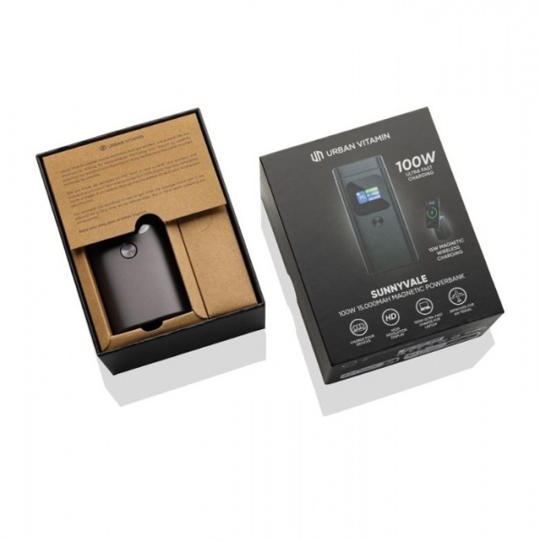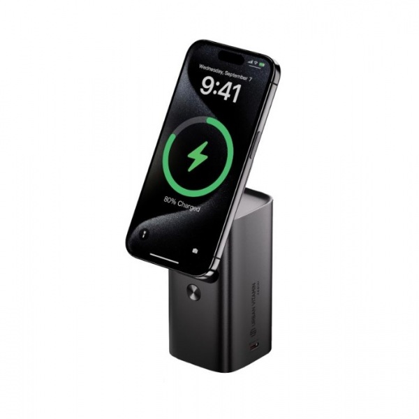 Powerbanka 15000 mAh s podporou ultra-rýchleho nabíjania 100W, ideálna pre laptopy. Vysokokvalitný farebný TFT displej, integrovaný 15W magnetický stojan na mobil. Nabíja 4 zariadenia súčasne: dva cez USB-C, jedno cez USB-A a jedno bezdrôtovo. PVC free.