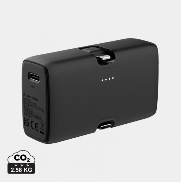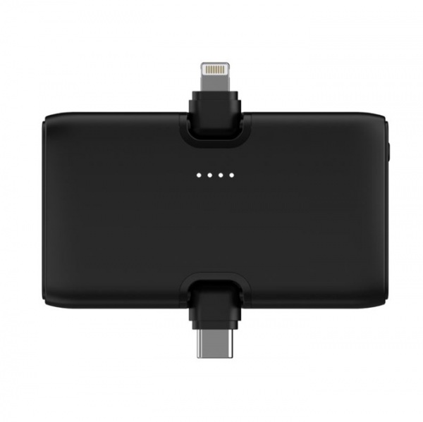 Powerbanka 5000 mAh s možnosťou duálneho rýchleho nabíjania cez integrovaný IOS konektor a najmodernejší výstup typu C. Ultra rýchle 20W nabíjanie. USB C vstup: 5V/2,4A USB C/Lightning výstup: 5V/2,4A. Integrovaný stojan. Extra 12W USB C port.