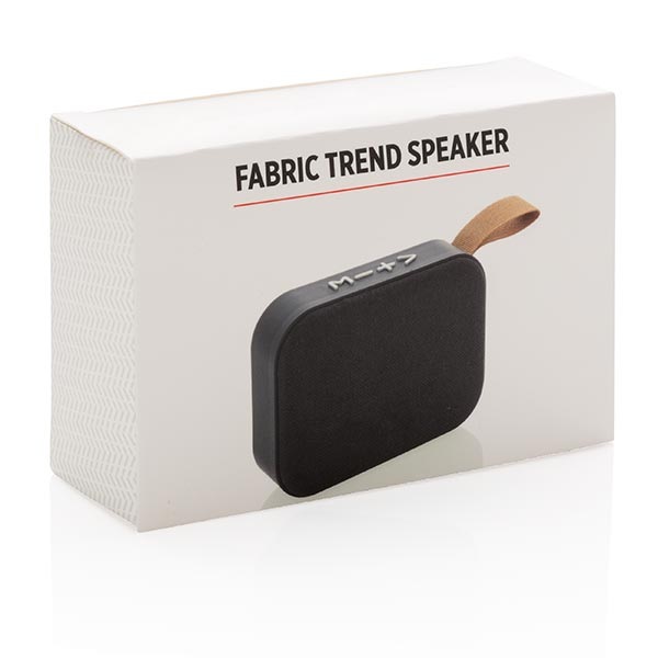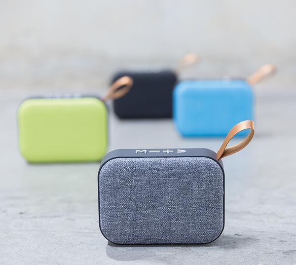 Bezdrôtový 3W reproduktor s mriežkou potiahnutou textíliou.