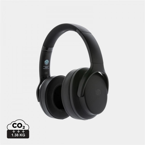Mäkké otočné náušníky, počúvanie až 35 hodín. Zabudovaný mikrofón, skladacie prevedenie. Vyrobené z RCS recyklovaného ABS plastu. Podiel recyklátu: 63%. Bez PVC.