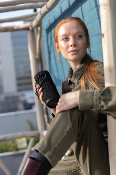 Odolný bezdrôtový reproduktor vhodný kamkoľvek na cesty. Počúvanie na pláži pri mori? Perfektné! Party pri bazéne? S prehľadom! Nečakaný dážď? Bez problému! Vodeodolnosť IPX7 umožňuje ponorenie do 1m hĺbky až na 30min. Od piesku stačí jednoducho opláchnuť
