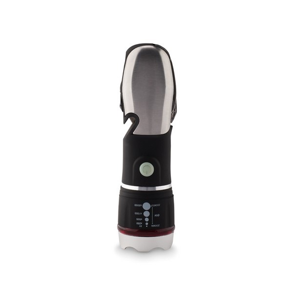 Multifunkčné náradie s baterkou, bezpečnostným kladivkom a rezačkou.