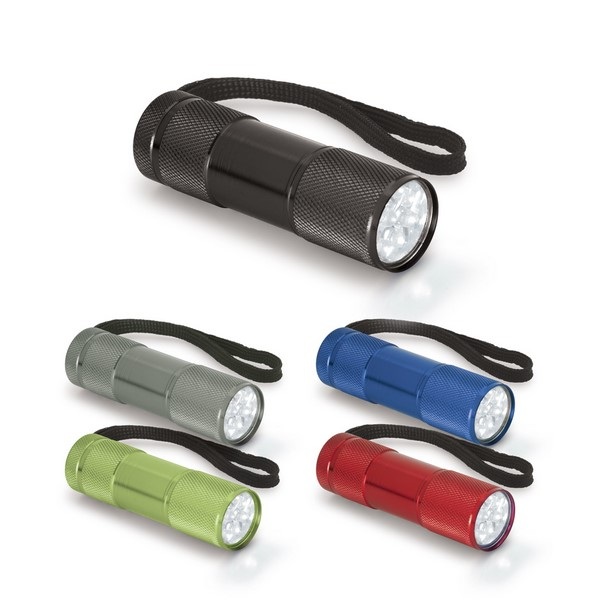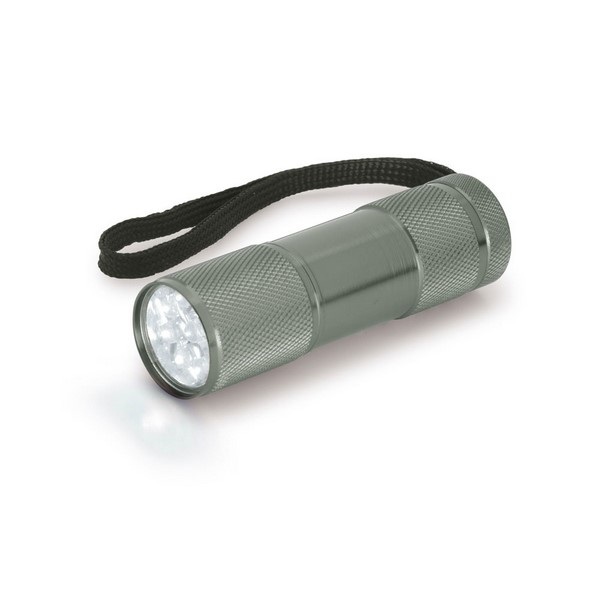 Hliníková 9-LED baterka, ktorej súčasťou sú 3 AAA batérie.
