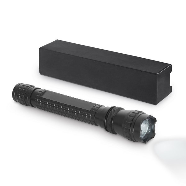 Hliníková baterka s LED. Súčasťou baterky sú 2 AA batérie a dodáva sa v darčekovej krabičke.