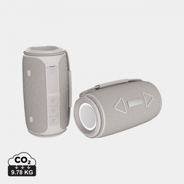 16W reproduktor s dvojitými subwoofermi poskytuje hlboké basy a čistý zvuk. IPX4 odolnosť voči striekajúcej vode a slabému dažďu. Rukoväť na prenášanie, batéria 1 500 mAh - 7 hodín prehrávania pri 50 % hlasitosti. BT 5.3, mikrofón. PVC free.