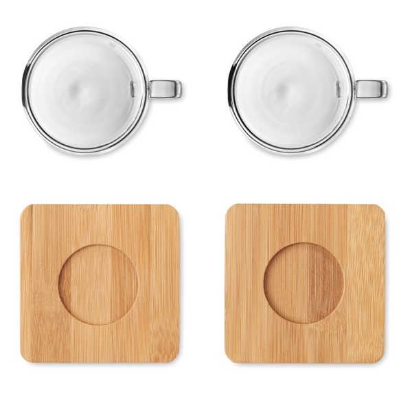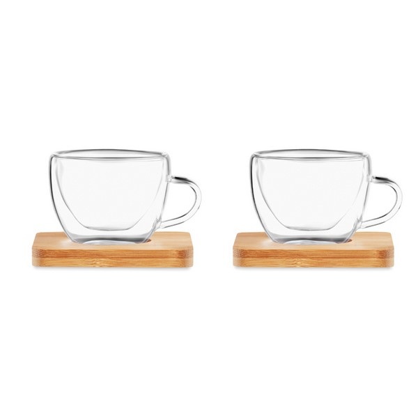 Set dvoch dvojstenných espresso šálok s bambusovým Podtácky.