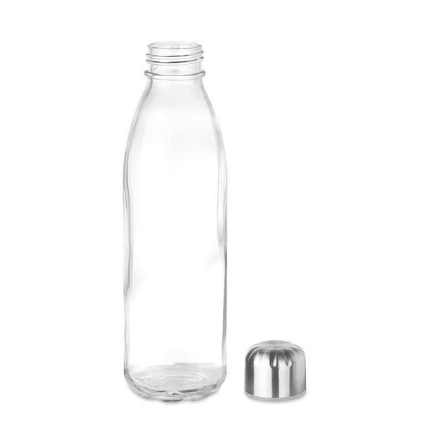 Sklenená fľaša na pitie, objem 650ml, nerezové viečko.