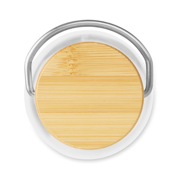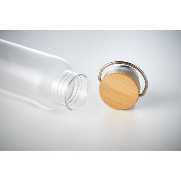Tritanová fľašu s objemom 800 ml s nerezovým dnom a vekom s bambusovými detailmi.