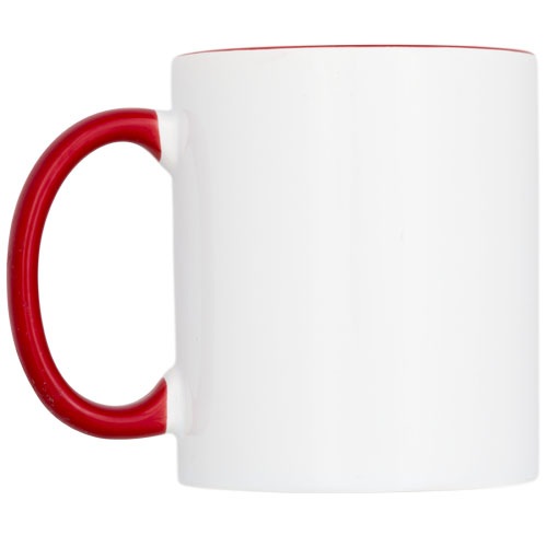 Keramický hrnček 330 ml, farebne zvýraznený, sublimačná tlač. Tento keramický hrnček s klasickým dizajnom má zvláštny povrch pre sublimačnú tlač. Hrnček má farebnú vnútornú stranu s totožne farebnou rukoväťou. Objem je 330 ml. Dodávaný v bielej kartónovej