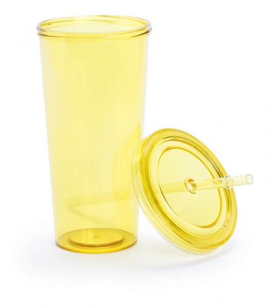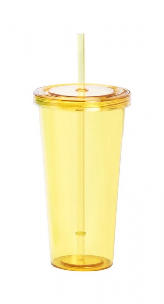 Farebný, plastový téglik na pitie so slamkou, 750 ml.
