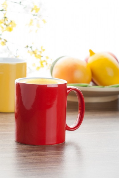 Farebný keramický hrnček, vnútri biely, 300 ml.