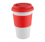 Keramický hrnček so silikónovým viečkom a uchytením, 400 ml.