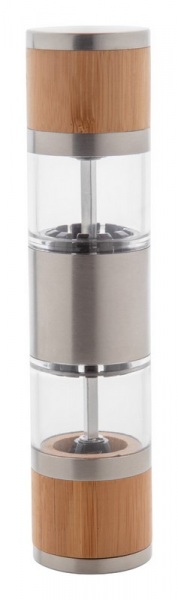 Obojstranný manuálny mlynček na soľ a korenie, nerez oceľ / bambus, s keramickým mlynčekom.