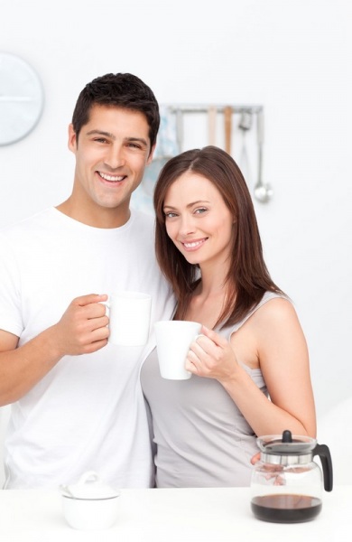 Biely keramický hrnček s farebným vnútrom, 350 ml.