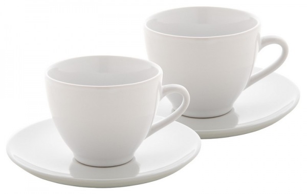 Keramická sada 2 ks šálok s tanierikom na cappuccino, 150ml. V bielej papierovej škatuľke.