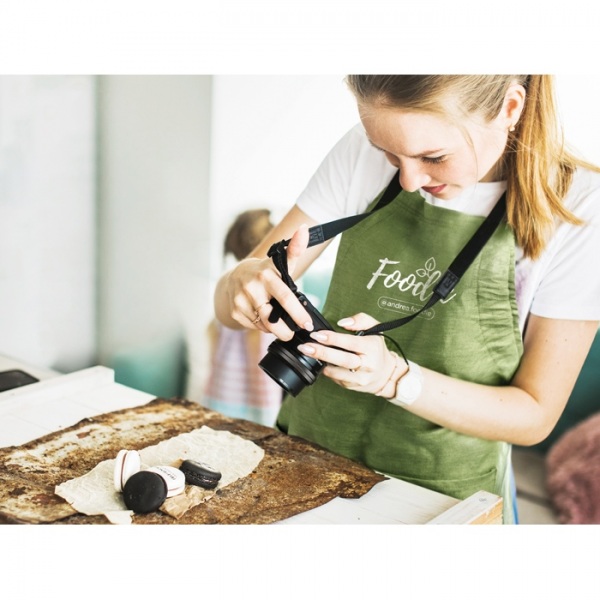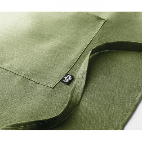 nastaviteľná kuchynská zástera z 200 gr / m? konopnej látky. 2 predné vrecká.