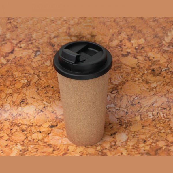 Nepriepustný plastový pohár s korkovým povrchom, uzatvárateľným vrchnákom a objemom 400 ml. Bez obsahu BPA.