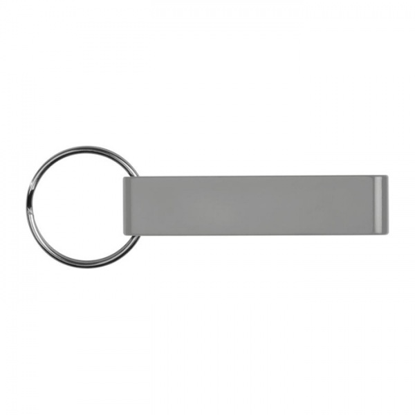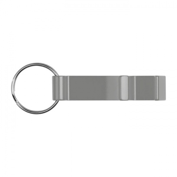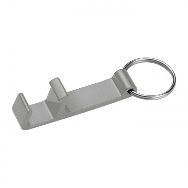 Kovová kľúčenka s otváračom fliaš a veľkým priestorom pre potlač. Obrátene je možné kľúčenku použiť ako držiak na mobil.