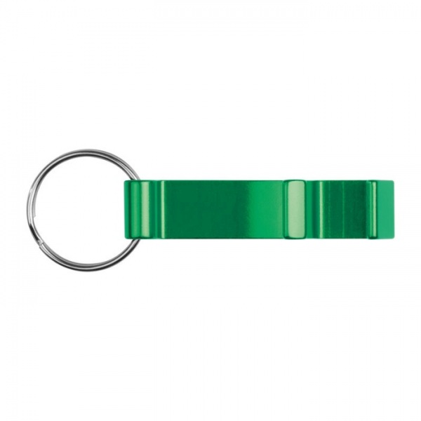 Kovová kľúčenka s otváračom fliaš a veľkým priestorom pre potlač. Obrátene je možné kľúčenku použiť ako držiak na mobil.