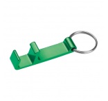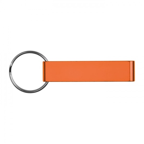 Kovová kľúčenka s otváračom fliaš a veľkým priestorom pre potlač. Obrátene je možné kľúčenku použiť ako držiak na mobil.