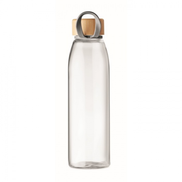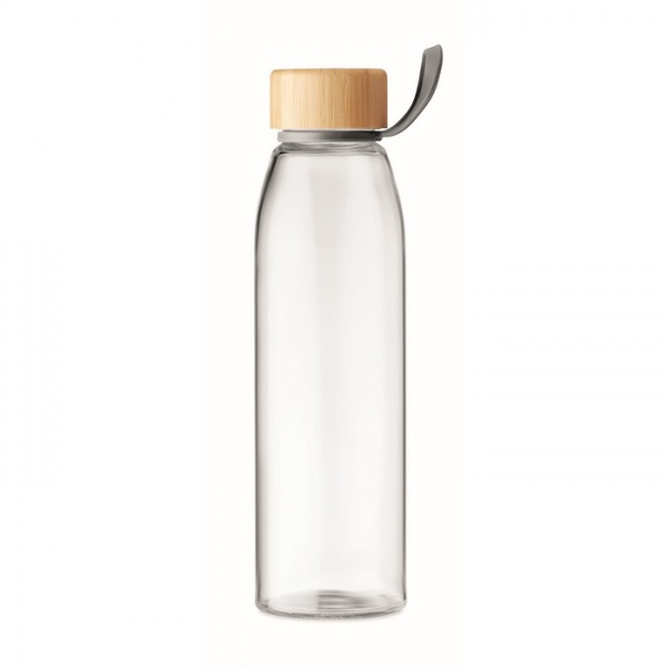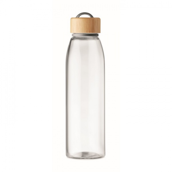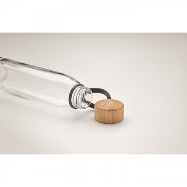 Sklenená fľaša s bambusovým vekom a držiakom z TPU. Nevhodné pre sýtené nápoje. Objem 500 ml.