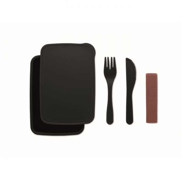 Obedová krabička z PP plastu s jedným oddielom, vrátane príborov.