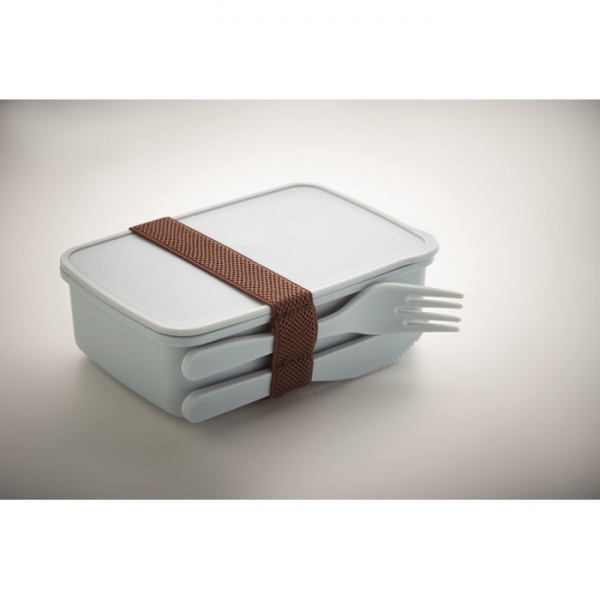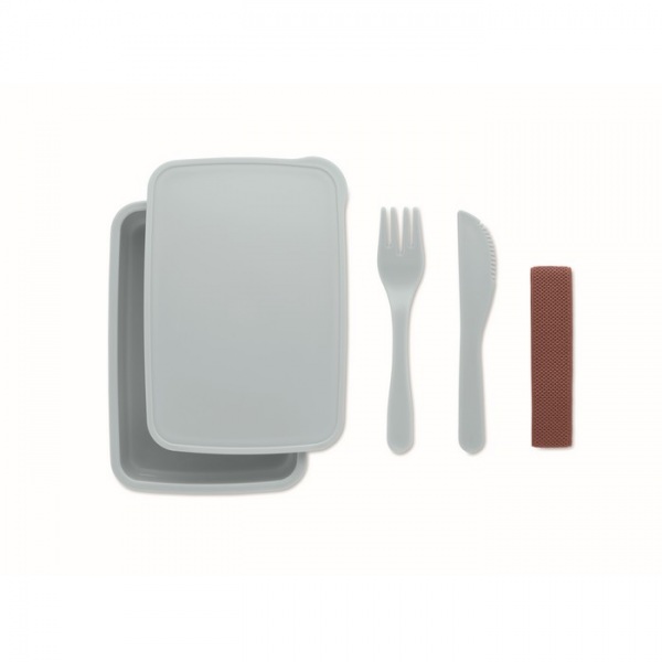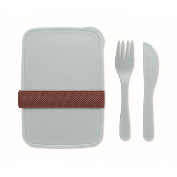 Obedová krabička z PP plastu s jedným oddielom, vrátane príborov.