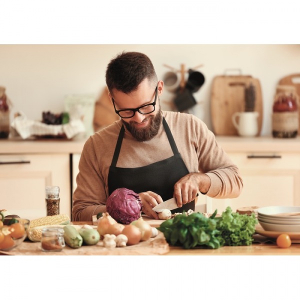 Kuchárska zástera s 2 prednými vreckami z 200 g / m? organickej bavlny. Certifikácia GOTS zaisťuje ekologicky a sociálne zodpovednú zdrojovú surovinu a výrobný proces. Vyrába sa podľa štandardu OEKO-TEX.