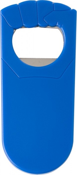Plastový a kovový otvárač na fľaše v tvare päste.