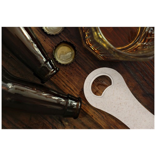 Otvárač na fľaše z pšeničnej slamy na otváranie fliaš piva, nealkoholických nápojov a pod. Pšeničná slama zostáva po zbere pšeničných zŕn, čo znižuje množstvo použitých plastov.