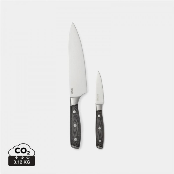 Súprava jedného porcovacieho a jedného vykosťovacieho noža. Nože sú vyrobené z nemeckej ocele X50CrMoV15 s rukoväťou z dreva pakka. Vynikajúce vyváženie čepele. Porcovací nôž: 20 cm čepeľ. Vykosťovací nôž: 8 cm čepeľ.