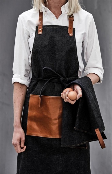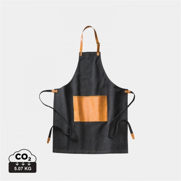 Robustná zástera z 500 g/m2 ošúchaného plátna s detailmi z vegánskej kože. Zástera, ktorá dôstojne starne.
