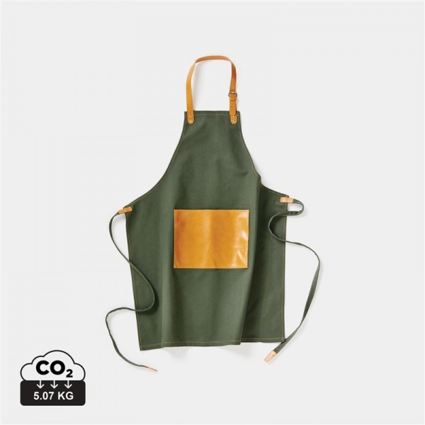 Robustná zástera z 500 g/m2 ošúchaného plátna s detailmi z vegánskej kože. Zástera, ktorá dôstojne starne.