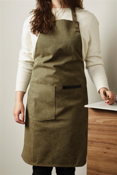 Zástera zo 40 % z recyklovaného polyesteru a zo 60 % z recyklovanej bavlny. Zástera má predné vrecko a pútko na zavesenie náradia alebo utierok. Má mäkký a nastaviteľný popruh na krk pre väčšie pohodlie.