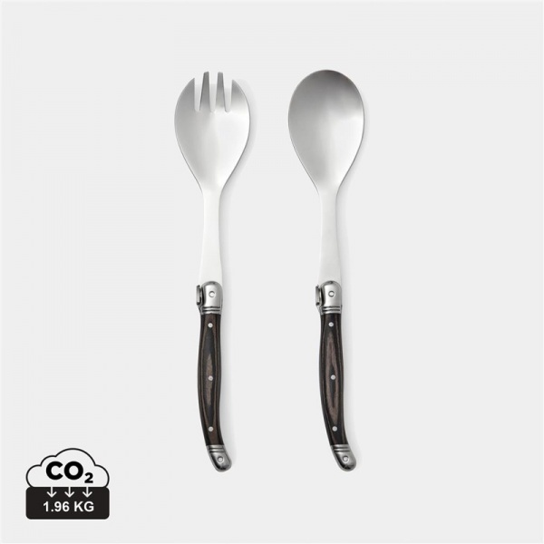 Kvalitný príbor na servírovanie šalátu v typickom francúzskom bistro štýle. Rukoväť z čierneho dreva pakka a vysokokvalitná čepeľ z nehrdzavejúcej ocele. Balené v exkluzívnej darčekovej škatuľke.