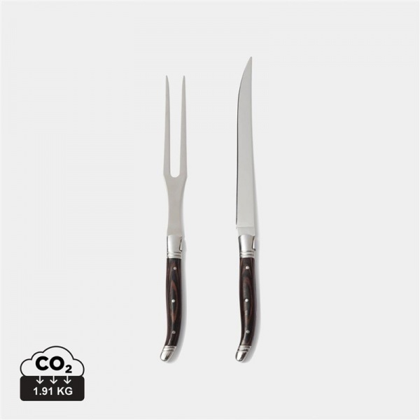 Súprava obsahuje nôž a vidličku v typickom francúzskom bistro štýle. Rukoväť z čierneho dreva pakka a čepeľ z vysokokvalitnej nehrdzavejúcej ocele. Balené v exkluzívnej darčekovej škatuľke.