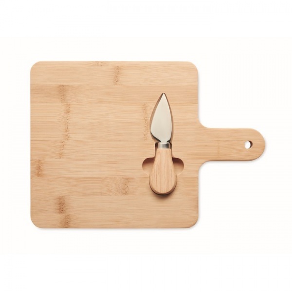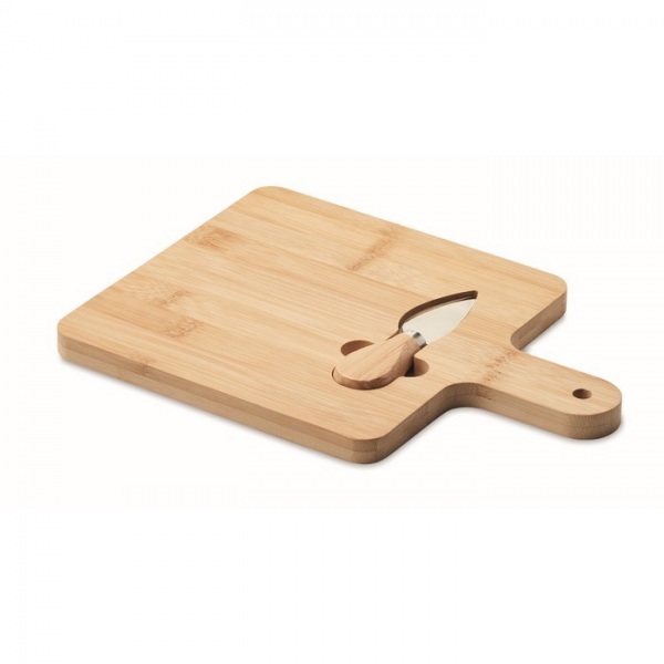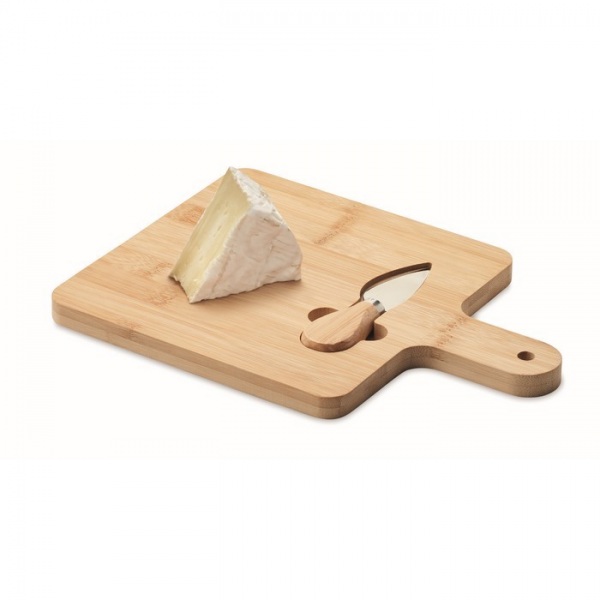 Bambusová servírovacia doska na syr so servírovacím nožom.