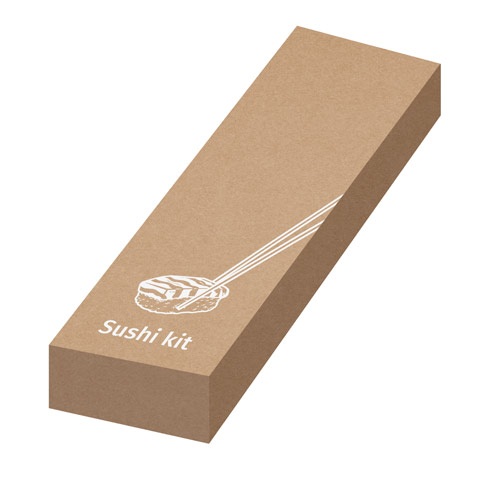 Sushi sada z bambusu s podložkou, 2 pármi paličiek, 1 lyžicou a 1 nožom. Dodávané v darčekovej krabičke z kraftového papiera