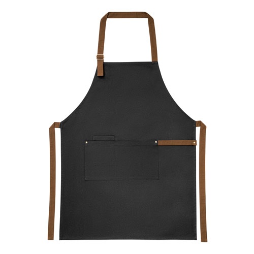 Zástera zo 100% bavlneného plátna (300 g/m?) s kovovými detailmi. S 3 multifunkčnými vreckami a bočným pásikom (na zavesenie kuchynskej utierky). Nastaviteľný popruh na krk. Dodáva sa s darčekovou krabičkou v kraftovom obale FSC