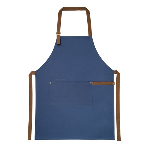 Zástera zo 100% bavlneného plátna (300 g/m?) s kovovými detailmi. S 3 multifunkčnými vreckami a bočným pásikom (na zavesenie kuchynskej utierky). Nastaviteľný popruh na krk. Dodáva sa s darčekovou krabičkou v kraftovom obale FSC