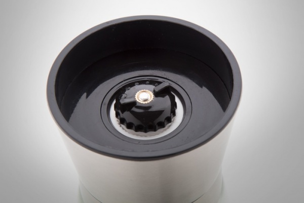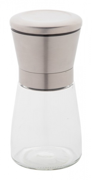 Nerezový ručný mlynček na soľ a korenie s keramickým jadrom mlynčeka a sklenenou nádobou, 180 ml.