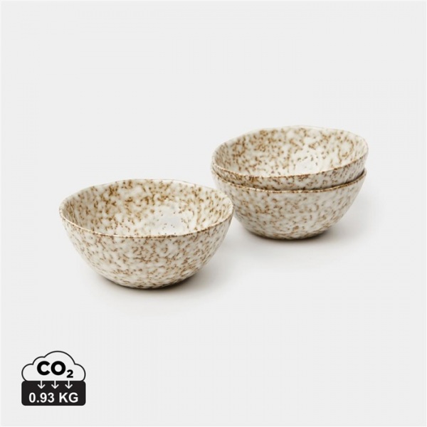Sada 3 ks kameninových servírovacích misiek. Vďaka charakteristickým nerovným tvarom a ručnému glazovaniu je každý kus unikát. Pevná kamenina je dostatočne odolná na každodenné použitie. Vhodné do umývačky riadu. Nie sú vhodné do mikrovlnky ani rúry.