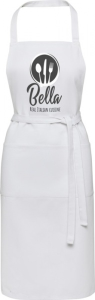 Zástera zo 70% recyklovanej bavlny s gramážou 240 g/m2 a 30% recyklovaného polyesteru. Má 2 vrecká (22 × 20 cm) a pásky na zaviazanie dlhé 1 m. Zástera obsahuje recyklované vlákna Cyclo®, kde používajú vopred vytriedený odpad, ktorý určuje farbu priadze.