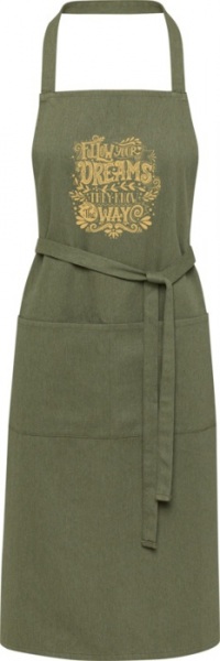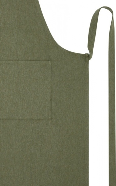 Zástera zo 70% recyklovanej bavlny s gramážou 240 g/m2 a 30% recyklovaného polyesteru. Má 2 vrecká (22 × 20 cm) a pásky na zaviazanie dlhé 1 m. Zástera obsahuje recyklované vlákna Cyclo®, kde používajú vopred vytriedený odpad, ktorý určuje farbu priadze.