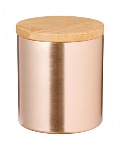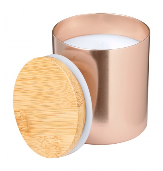 Vanilková vonná sviečka v hliníkovom držiaku s bambusovým viečkom.