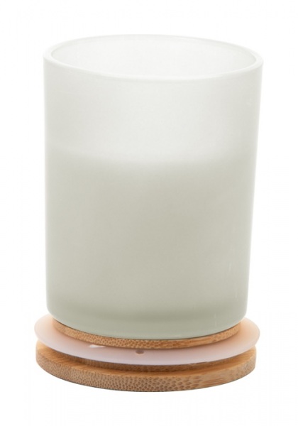 Vosková sviečka na rastlinnej báze v matnom sklenenom držiaku s bambusovým viečkom. S 200 gramami vosku. V kraftovej papierovej krabici.