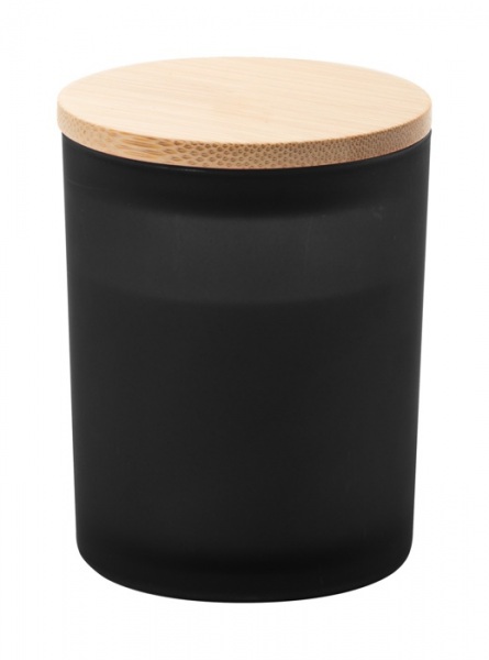 Vosková sviečka na rastlinnej báze v matnom sklenenom držiaku s bambusovým viečkom. S 200 gramami vosku. V kraftovej papierovej krabici.