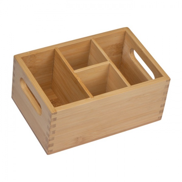 Veľký bambusový podnos na príbor so štyrmi oddielmi na uloženie servítky, príboru, cukru, soli, koreniny apod.